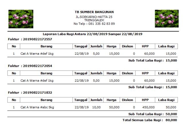 sampai dengan laporan penjualan, laporan laba rugi toko,