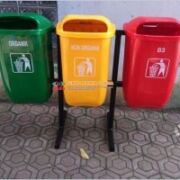 Tempat Sampah Fiberglass Gandeng Tiga dengan ukuran 50 liter dengan di lengkapi Tiang Penyangga dengan jenis Tiang Tanam dam Tiang Pindah untuk informasi lebih lanjut bisa langsung hubungi markerting kami atau langsung datang ke kantor kami: KANTOR FINDO… -